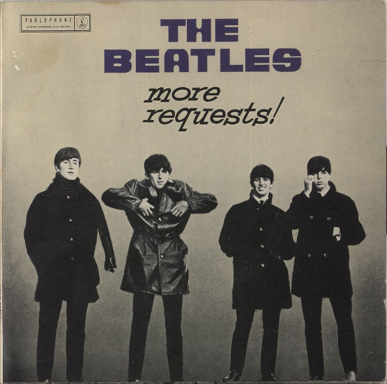 THE BEATLES More Requests! (1970s Australian issue of the 1964 4-track vinyl 7" EP, including Slow Down, Matchbox, Till There Was You and I Wanna Be Your Man, 'pinched' spine picture sleeve. The sleeve shows a little discolouration in one corner evident on the front and reverse as well as a bit of light scuffing to the front but the vinyl remains in stunning excellent condition with minimal wear for its years GEPO70014)