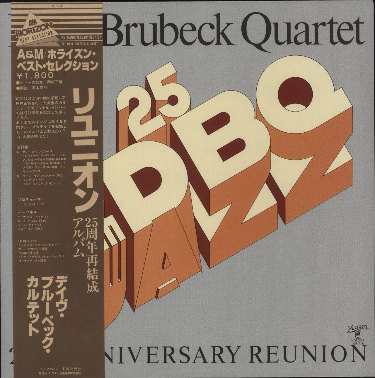 DAVE BRUBECK QUARTET 25th Anniversary Reunion (1979 Japanese 6-track vinyl LP, including the three-part African Times Suite, featuring the classic line-up of Brubeck, Paul Desmond, Eugene Wright & Joe Morello, single pocket picture sleeve withJapanese sleeve notes insert and obi-strip. The sleeve shows minimal wear and the vinyl is Near Mint HOJ-2005)