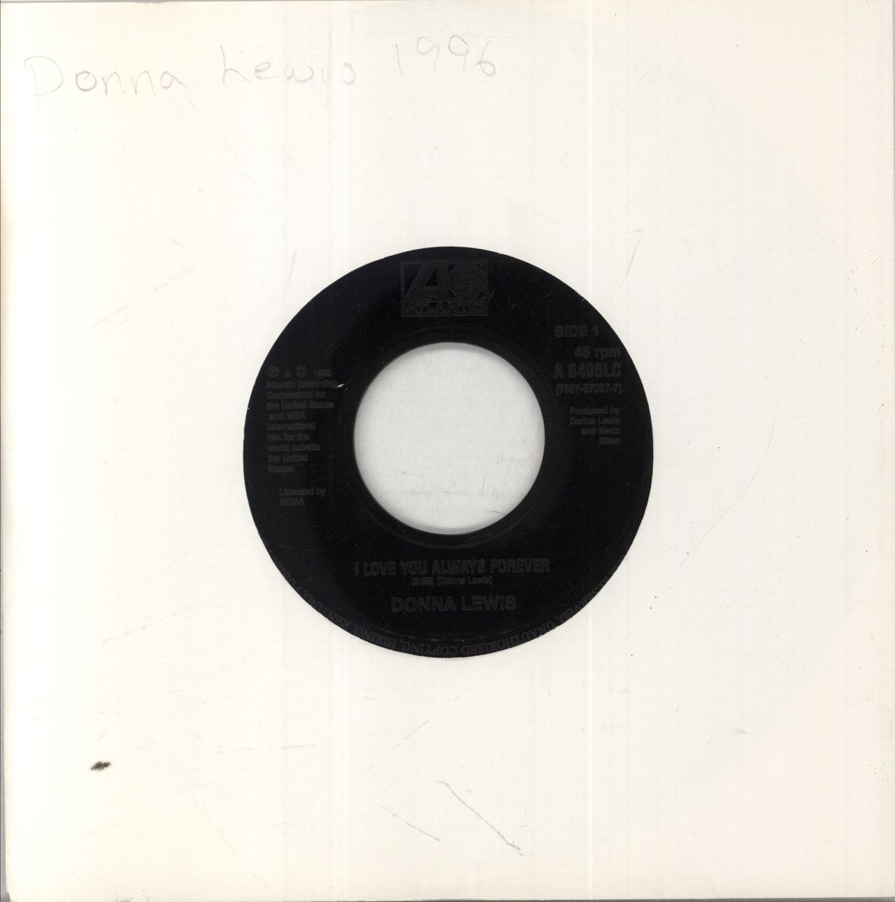 DONNA LEWIS I Love You Always Forever (1996 UK black injection moulded wide centre vinyl 7" for the single release, pressed exclusively for jukebox use, featuring the Philly Remix, plain die-cut card sleeve A5495LC)