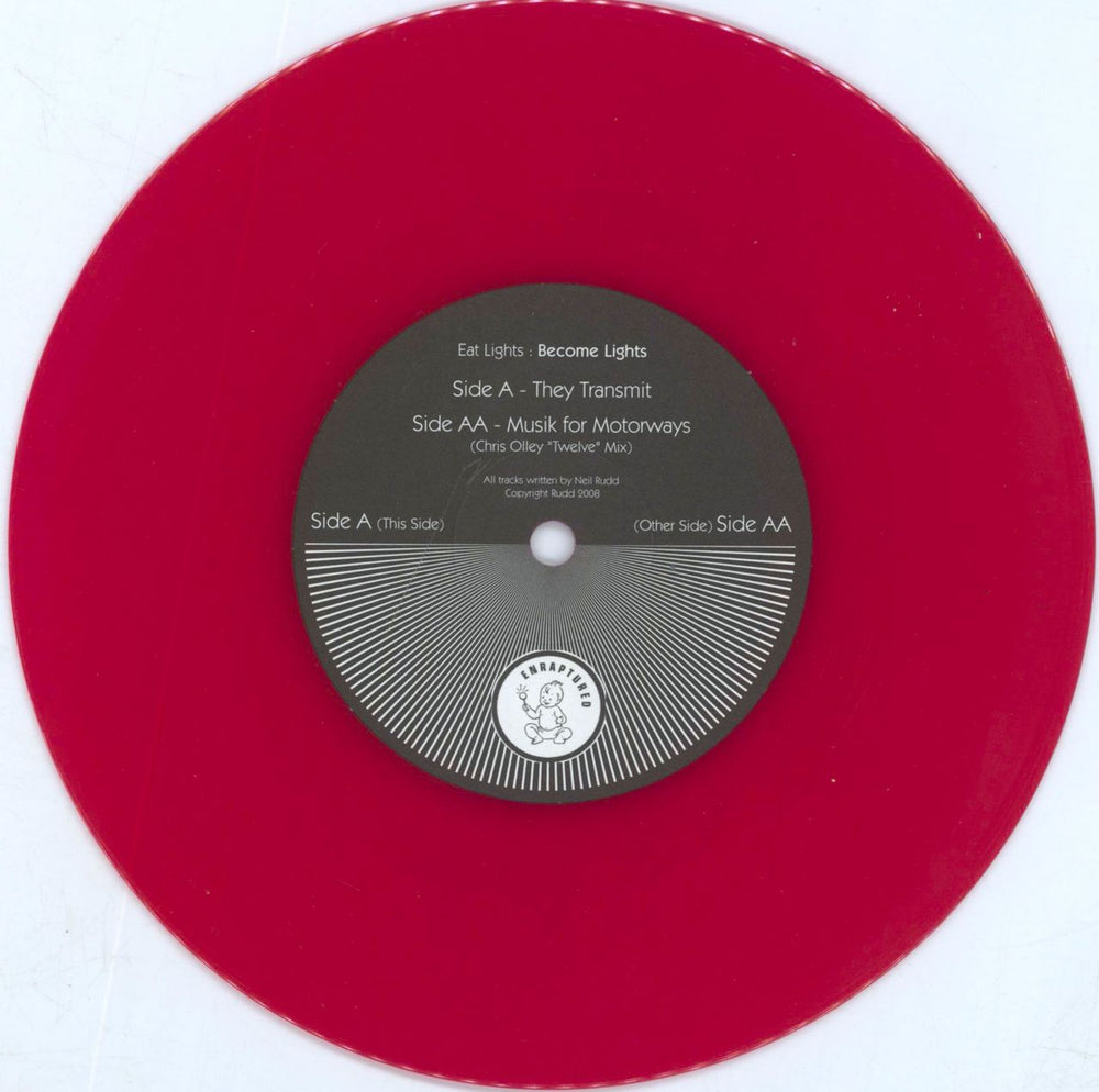 EAT LIGHTS BECOME LIGHTS They Transmit (Original DEBUT 2008 UK limited edition 2-track 7" single pressed on Red Vinyl, also including Musik For Motorways [Chris Olley "Twelve" Mix]. The picture sleeve showsa little light shelfwear but the vinyl looks barely played)
