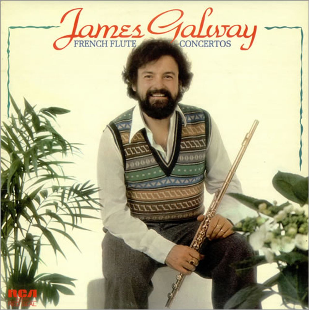 JAMES GALWAY with THE ROYAL PHILHARMONIC ORCHESTRA conducted by CHARLES DUTOIT French Flute Concertos (1977 UK 4-track LP featuring concertos by Ibert, Chaminade, Poulenc & Fauré, front laminated picture sleeve. The sleeve shows just a littlelight shelfwear & the vinyl appears barely played RL25109)