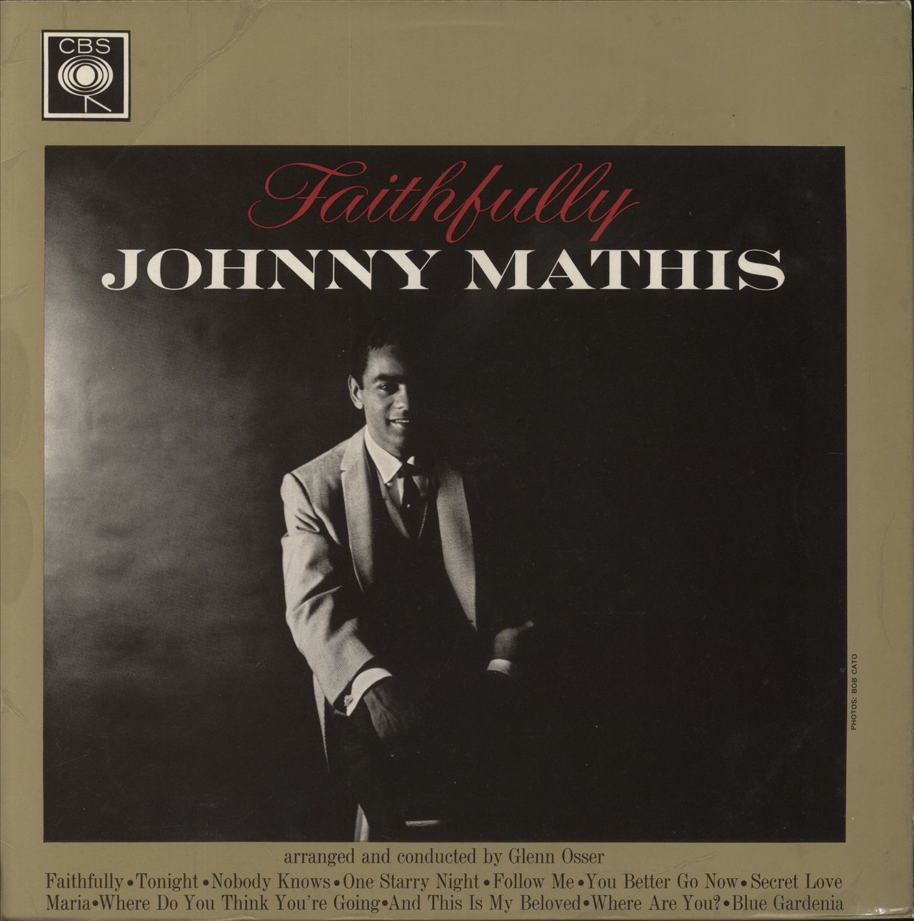 JOHNNY MATHIS Faithfully (1970s UK issue of the 1959 12-track LP on the 'smooth' orange CBS label in fully laminated picture sleeve. The sleeve shows light wear and the vinyl is Excellent with light signs of play)