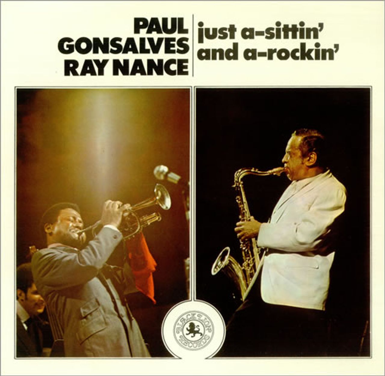PAUL GONSALVES & RAY NANCE Just A-Sittin' & A-Rockin' (1973 UK Black Lion label 8-track stereo LP featuring recordings from two fantastic 1970 New York sessions, glossy picture sleeve with detailed notes & personnel. The sleeve shows very littleof its age & the vinyl still looks barely played)