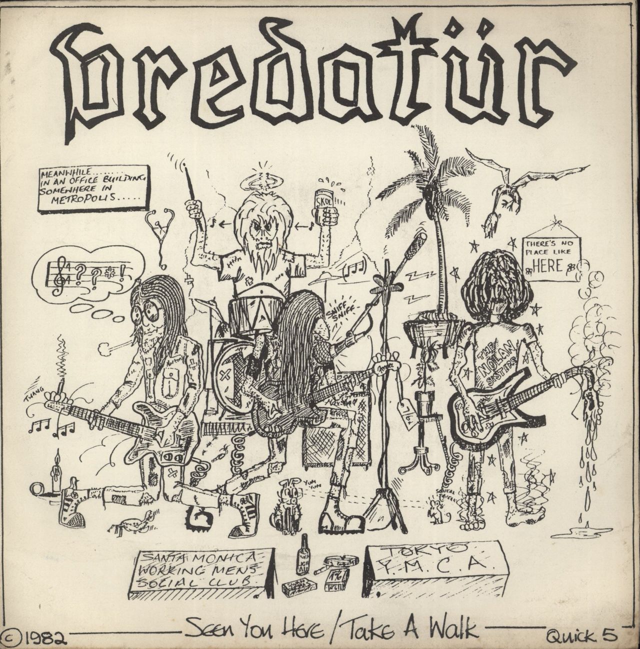 PREDATÜR Seen You Here / Take A Walk (Rare original 1982 UK private press 7" vinyl single from the New Wave of British Heavy Metal era, featuring two raw & energetic cuts of classic NWOBHM attitude. Released on the band's own QuickSilver records, this hard-to-find gem comes housed in a ciustomer printed sleeve. The vinyl remains in Excellent condition with only light signs of play – a cult favourite and a must-have for serious NWOBHM collectors. QUIK5)
