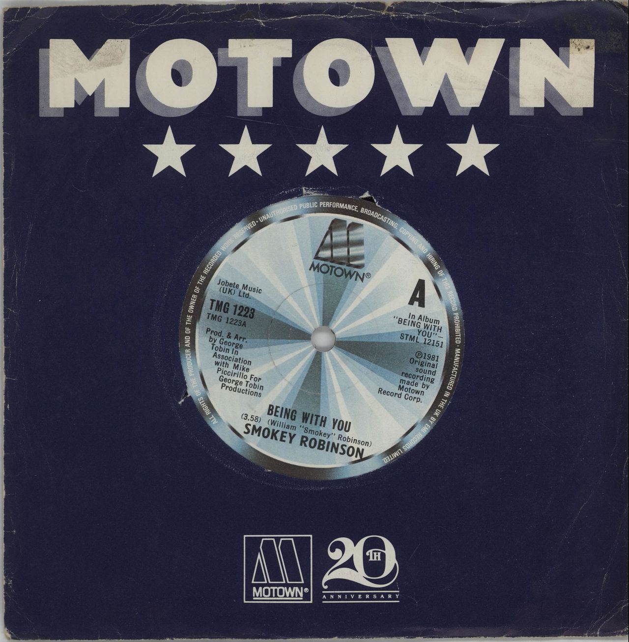 SMOKEY ROBINSON Being With You (1981 UK solid centre 7" vinyl single, also including What's In Your Life For Me, Motown company die-cut paper sleeve TMG1223)