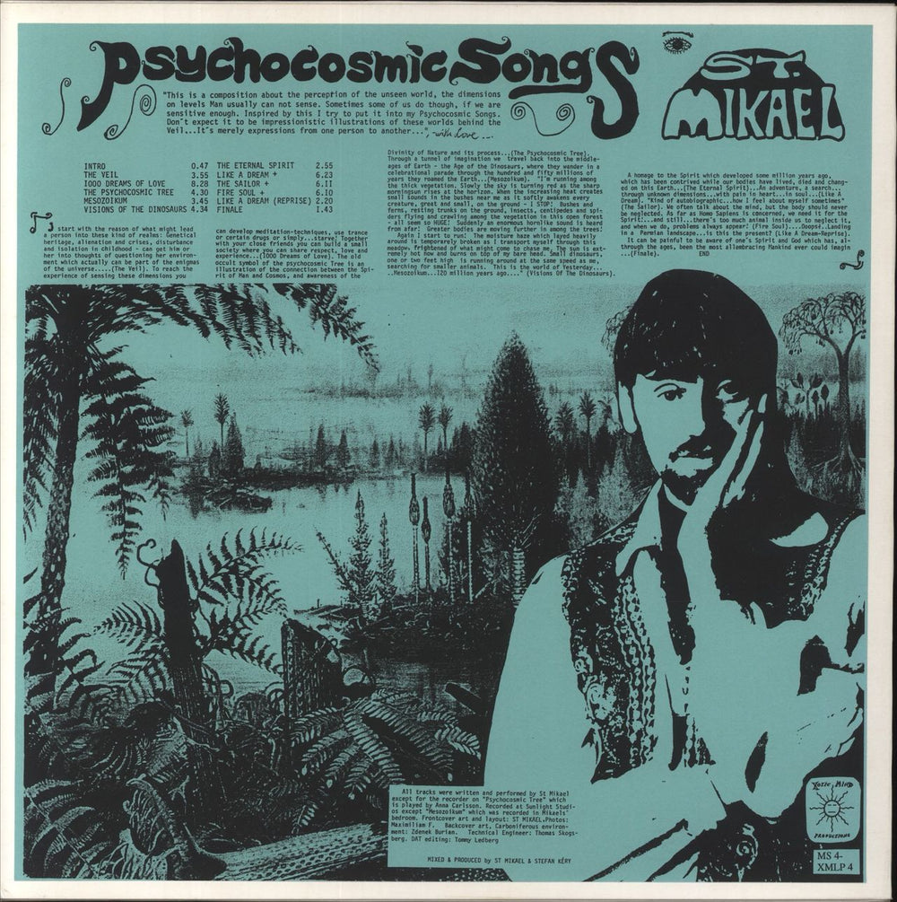 ST. MIKAEL Psychocosmic Songs (Rare 1994 Swedish 12-track vinyl LP, by the enigmatic Swedish psychedelic multi-instrumentalist. Housed in a paste-on single pocket picture sleeve with A4-sized booklet. The sleeve, vinyl and booklet all around remain in Excellent, bordering Near Mint condition with minimal signs of wear for its age)