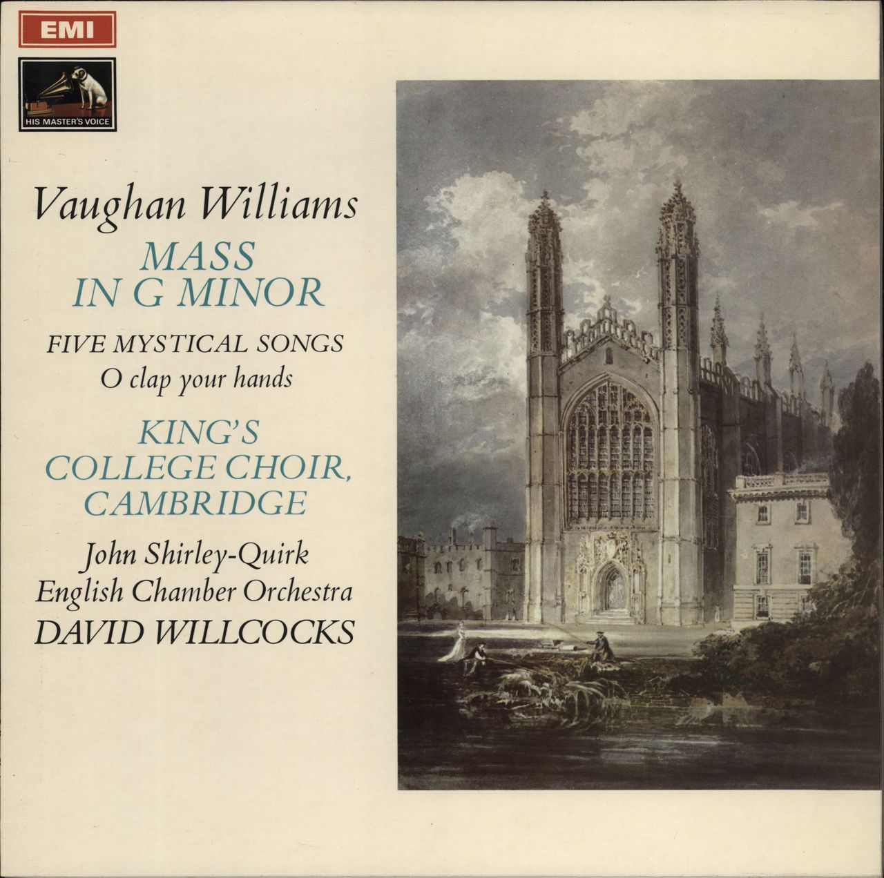 KINGS COLLEGE CHOIR, CAMBRIDGE with THE ENGLISH CHAMBER ORCHESTRA conducted by DAVID WILLCOCKS Vaughan Williams: Mass in G Minor/ Five Mystical Songs (1972 UK third issue of the 1969 Stereo LP on the 'colour stamp' label, also featuring John Shirley-Quirk [Baritone], front laminated picture sleeve. The sleeve shows minimal wear & the vinyl still looks barely played ASD2458)