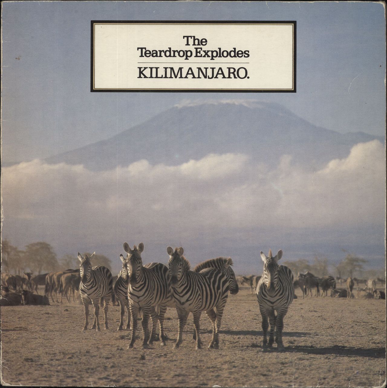 THE TEARDROP EXPLODES Kilimanjaro (1981 UK second issue 12-track vinyl LP, now including the hit single 'Reward', not featured on the first issue, complete with illustrated lyric inner, picture sleeve. The sleeve shows general edgewear - mainly to the spine and the inner has some faint foxing. The vinyl displays only light play. An Excellent example)