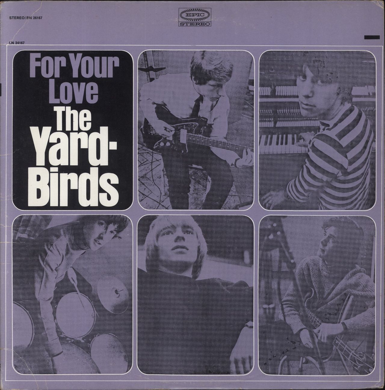 THE YARDBIRDS For Your Love (Rare original 1965 US 11-track STEREO LP on the yellow Epic label with original 'Nonbreakable' label print to the left hand side, housed in a unique pasted picture sleeve. The sleeve [VG] has clean panels with someedgewear and corner creasing while the vinyl is clean & grades Excellent with a couple of minor paper scuffs not affecting play BN26167)
