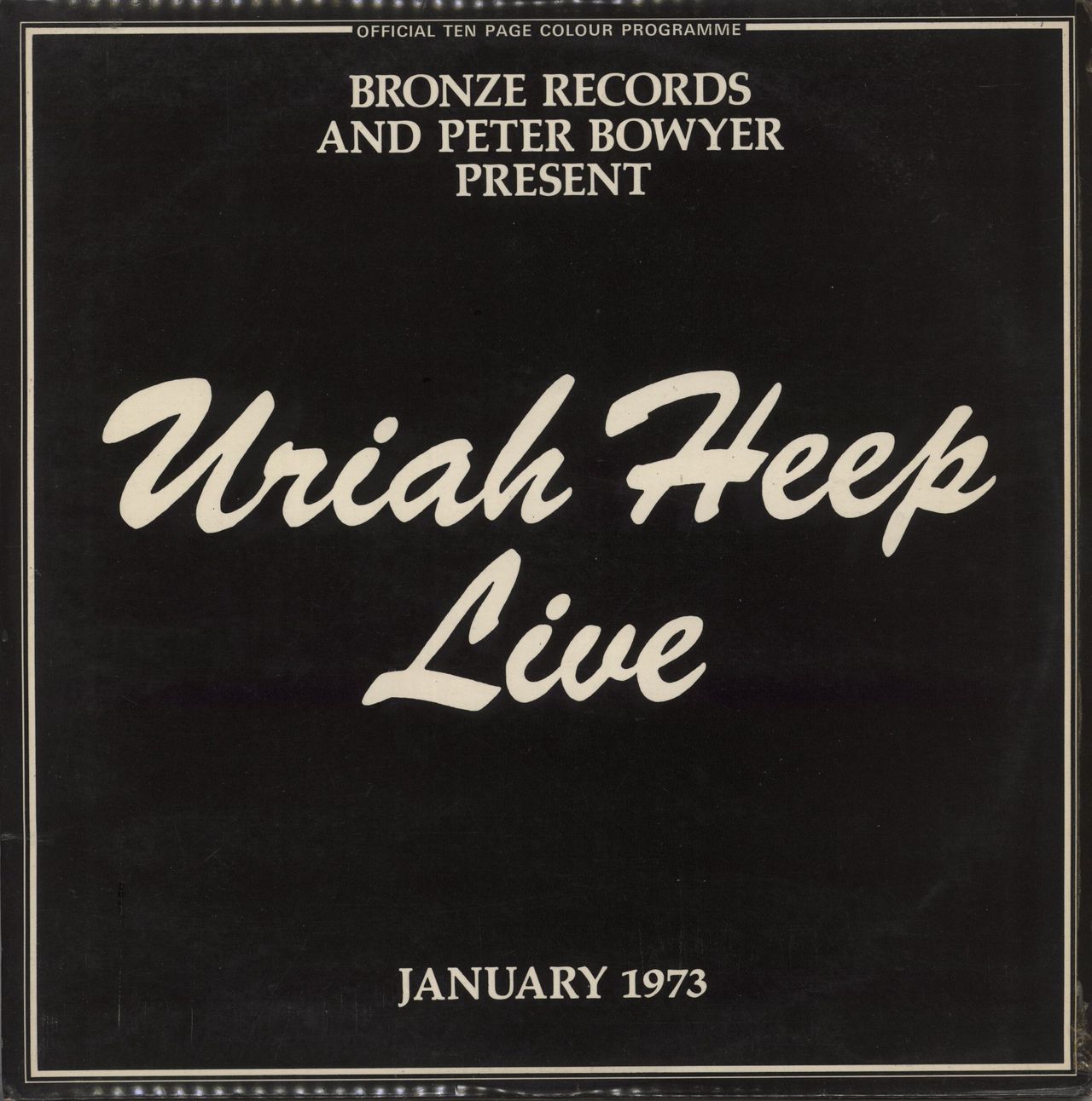URIAH HEEP Live (1973 UK 13-track double LP, recorded live in the UK in January that year, front laminated gatefold sleeve with illustrated inners and integral full colour eight page booklet which, along with the inner spread photopage and linernotes, make up the 'Official ten page colour programme'. The sleeve has some creasing to the laminate and the inners carry some vintage tape repair, whilst the vinyl has a few light surface scuffs, but remains in excellent conditon. A nice complete copy offered at an advantageous price ISLD1)