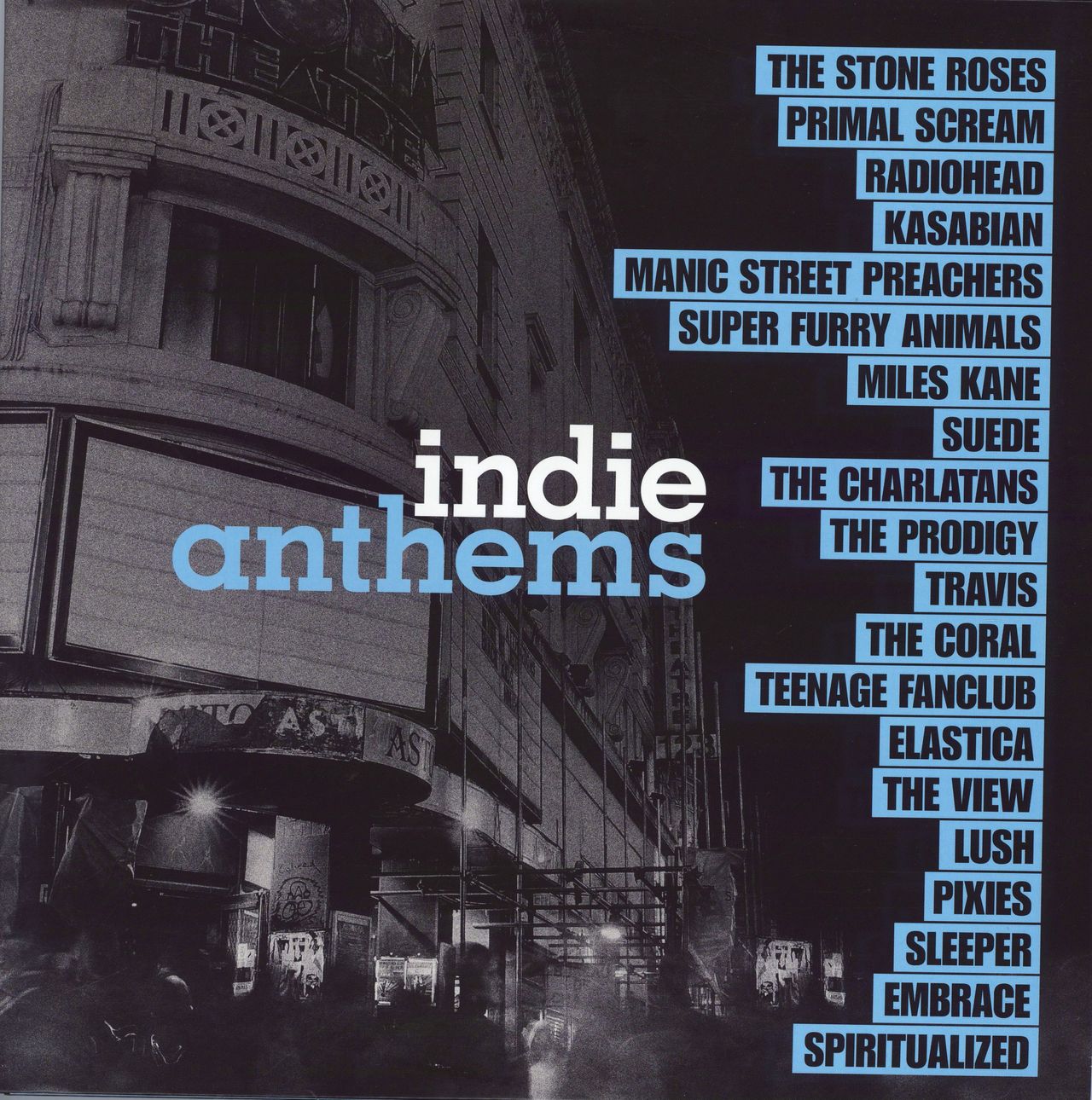 VARIOUS-INDIE Indie Anthems (2017 UK 20-track double vinyl LP compilation, with gatefold picture sleeve and printed inners. Superb collection of indie tracks from '90s classics from Radiohead and The Charlatans, 2000's bangers from The View and Kasabian, as well as underrated hits from Lush and Teenage Fanclub. The sleeve shows minimal wear from storage, while the vinyl itself displays little evidence of play)