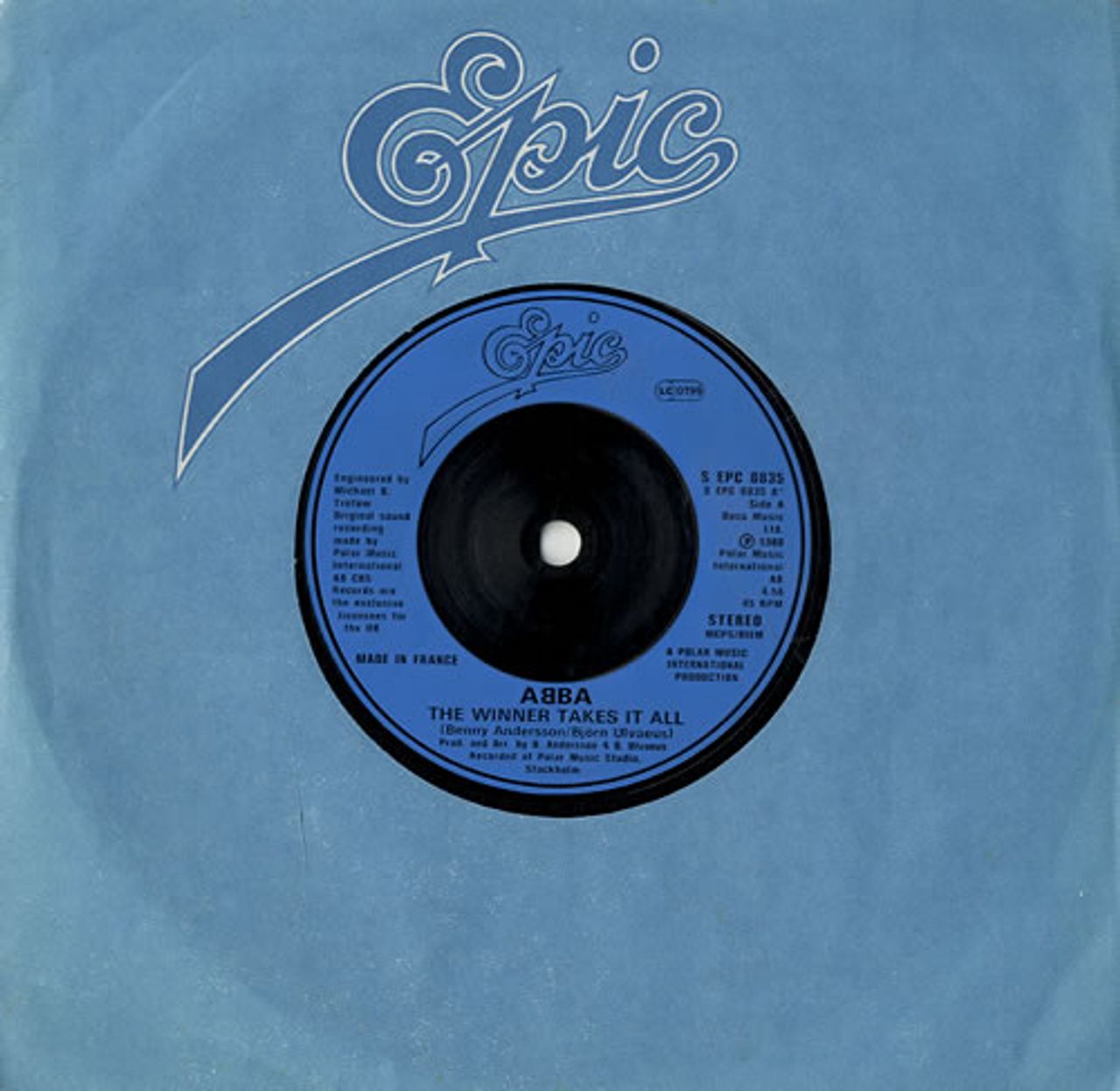ABBA The Winner Takes It All (1980 UK/French-pressed injection moulded 7" vinyl single, also featuring the b-side 'Elaine', Epic die-cut company sleeve SEPC8835)