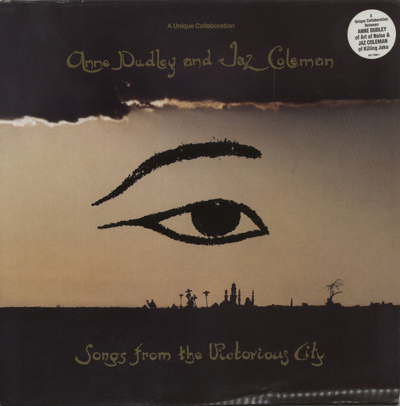 ANNE DUDLEY & JAZ COLEMAN Songs From The Victorious City (1990 UK 10-track LP, a unique collaboration between Anne Dudley of Art Of Noise & Jaz Coleman of Killing Joke, picture sleeve with artist hype sticker to the front. The sleeve has a crease to the bottom corner and has a 1" seam split to the top, whilst the vinyl is Excellent & appears barely played)