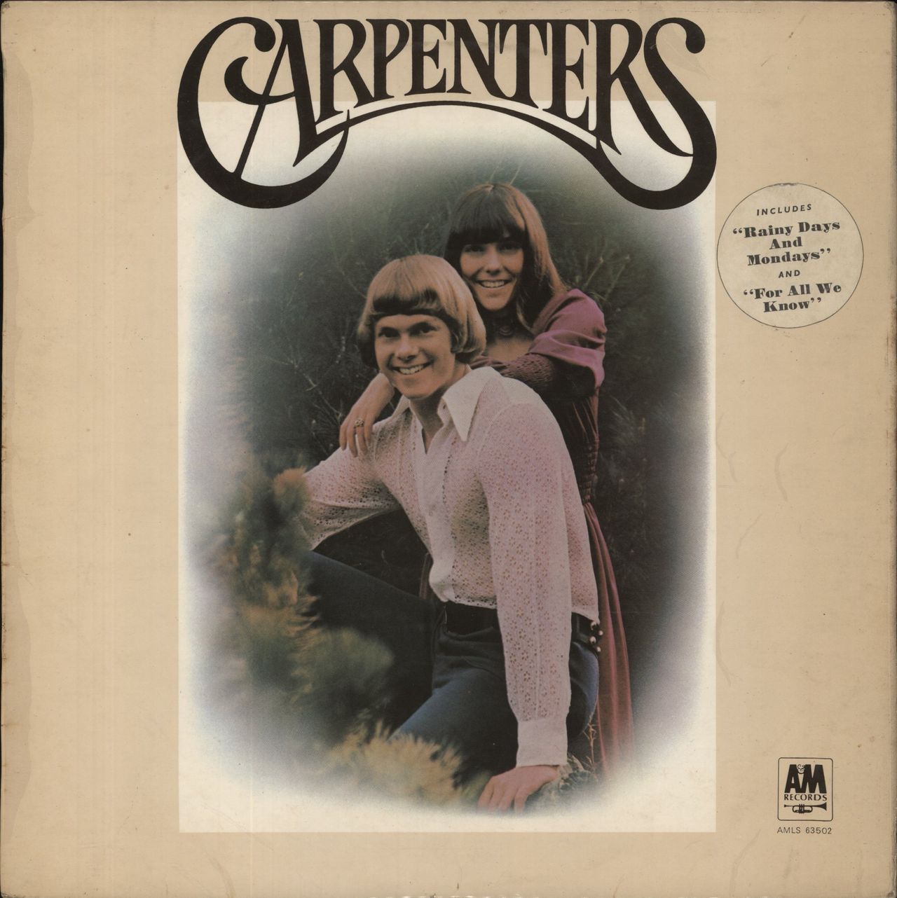 CARPENTERS Carpenters (1971 UK 10-track LP including their classic arrangements of Rainy Days & Mondays and Superstar, fully laminated picture sleeve with song hype sticker in place. The sleeve shows light creasing and the vinyl remains in Excellent condition with few signs of play AMLS63502)