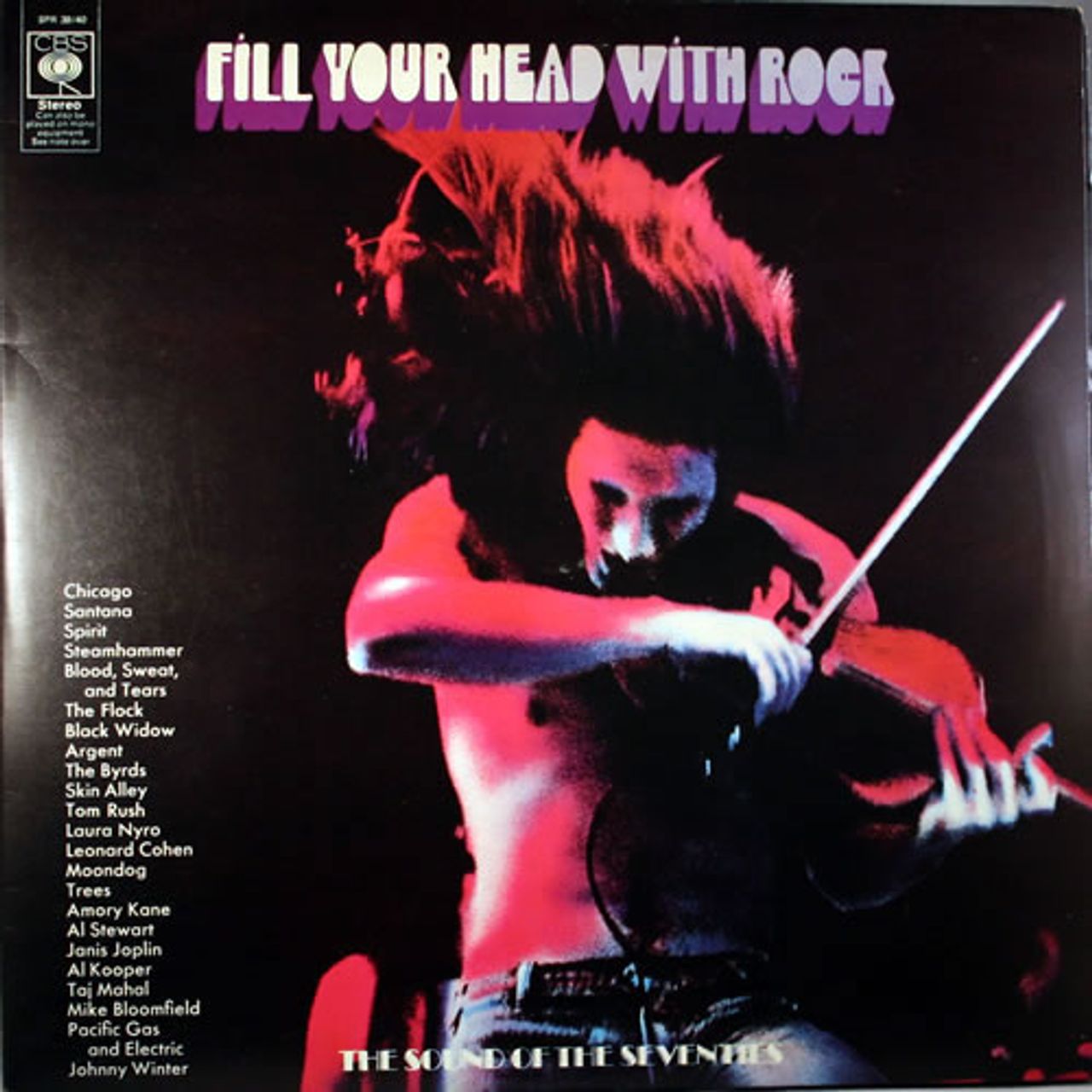 VARIOUS Fill Your Head With Rock (1970 UK 23-track double LP label sampler compilation, including tracks by Chicago, Santana, The Byrds, Laura Nyro, Moondog ['Stomping Ground'], Trees ['The Garden Of Jane Delawney'] and more, gatefold picturesleeve with eight page illustrated booklet. The sleeve shows just a little light shelfwear & the vinyl shows just a few signs of play - A superb copy SPR39/40)