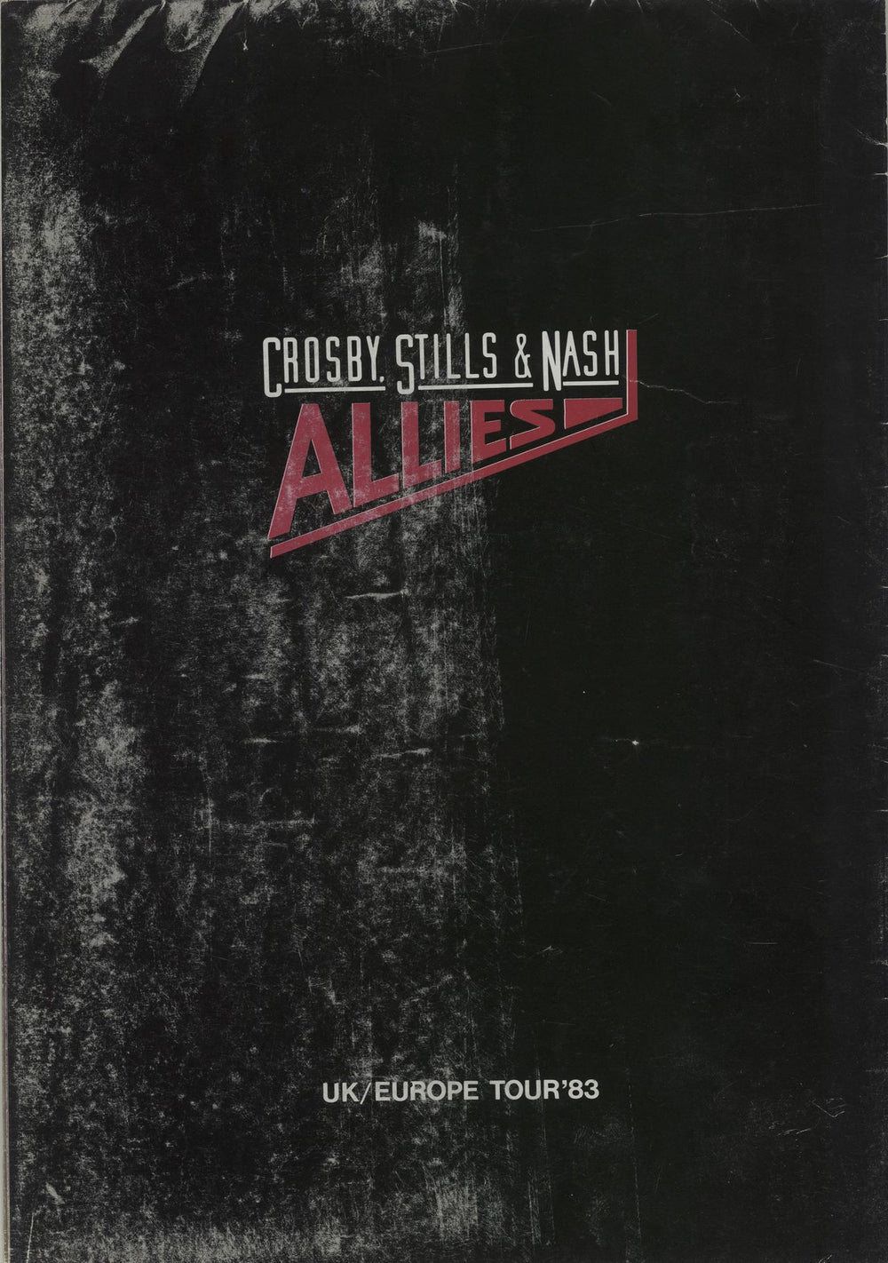 CROSBY STILLS & NASH Allies - UK / Europe Tour '83 (1983 UK 8" x 11½" fold-out tour programme, which folds out to become a 23½" x 32½" full colour poster, also contains tour credits and discography. The front and back show noticeable print fade, however the colour poster shows minimal wear)