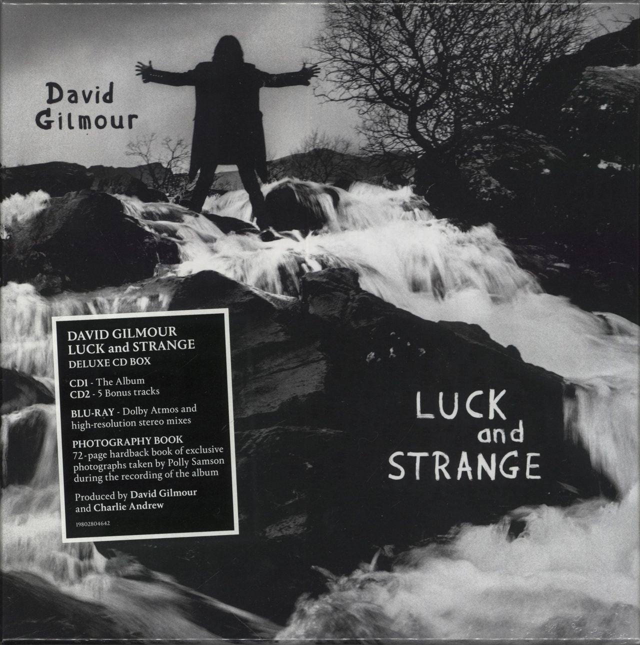 DAVID GILMOUR Luck And Strange - Deluxe CD & Blu-Ray Box (Deluxe Edition 2024 UK/EU CD & Blu-Ray Box Set containing 2xCDs, a Blu-Ray Disc with Dolby Atmos and Hi-resolution Stereo Mixes, a 72-page Hardback Photography Book. Housed inside a deluxe lift-off lid picture box, factory sealed with hype sticker)