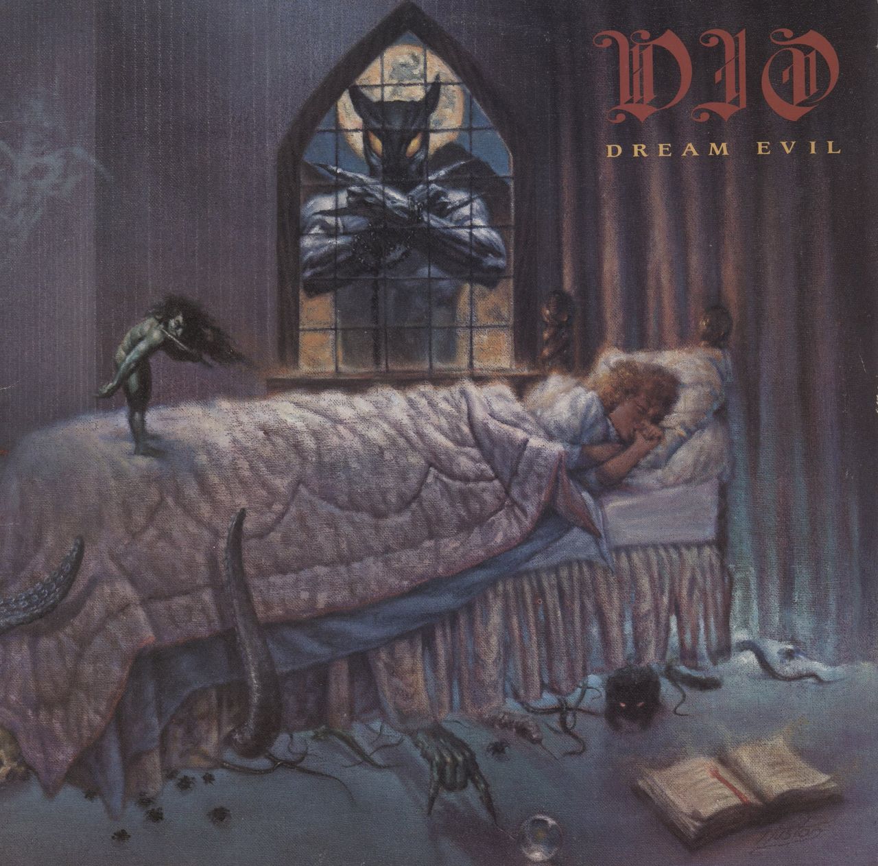 DIO Dream Evil (1987 UK first press 9-track LP with A1/B1 stamped matrices in the run-outs, their fourth album which features guest appearances from Rough Cutt's Craig Goldy & Claude Schnell. Includes the singles All the Fools Sailed Away & ICould Have Been A Dreamer. Complete with the illustrated credits inner, the picture sleeve shows minor edgewear, whilst the vinyl shows few noticeable hairlines, not affecting playback. Overall a Very Good copy VERH46)