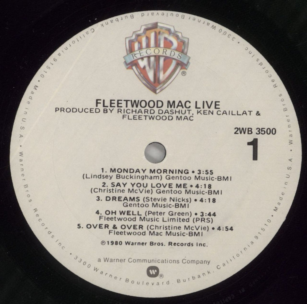 FLEETWOOD MAC Live (1980 US 18-track double vinyl LP, recorded on the immense 'Tusk' tour of 1979/80, complete with the original tour date/credits inners, gatefold picture sleeve with small deletion saw cut. There are a couple of splits at theedges of the inners and the sleeve shows some light signs of wear, yet the vinyl remains in excellent condition 2WB3500)
