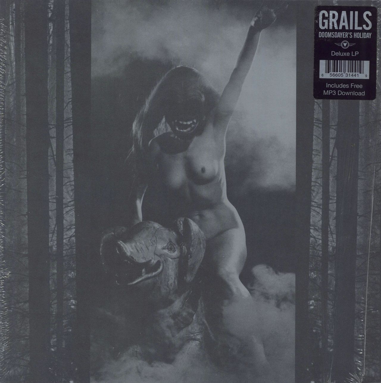 GRAILS Doomsdayer's Holiday (2008 US strictly limited edition 7-track Black Vinyl LP, the fifth studio album from the American experimental rockers'. Complete with the glossy picture inner which has a seam split to one edge, the 'Statue Artwork' picture sleeve retains its hype-stickered opened shrinkwrap and the vinyl displays just light signs of play)