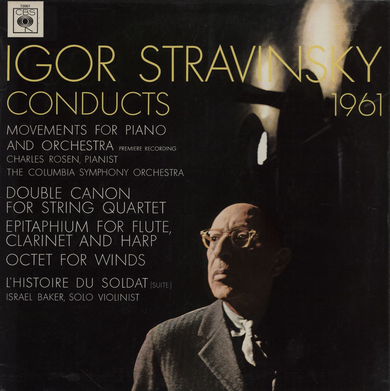 IGOR STRAVINSKY Conducts, 1961 (1960s UK 9-track stereo LP, featuring various performances conducted by the man himself, including the Double Canon for String Quartet, the L'Histoire Du Soldat and more, with picture sleeve. The sleeve shows minimal wear and the viny is Near Mint)