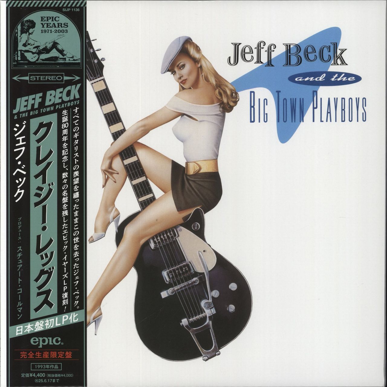 JEFF BECK & THE BIG TOWN PLAYBOYS Crazy Legs (2024 Japanese only limited edition 18-track newly remastered vinyl LP issue of the British guitarist's 1993 album, released as part of the 'Epic Years 1971-2003' series, first time pressed on vinyl in Japan. Complete with a fold-out Japanese text insert & custom obi-strip. To protect the sleeve, the vinyl has now been removed from the sleeve for storage & transit, and remains brand new!)