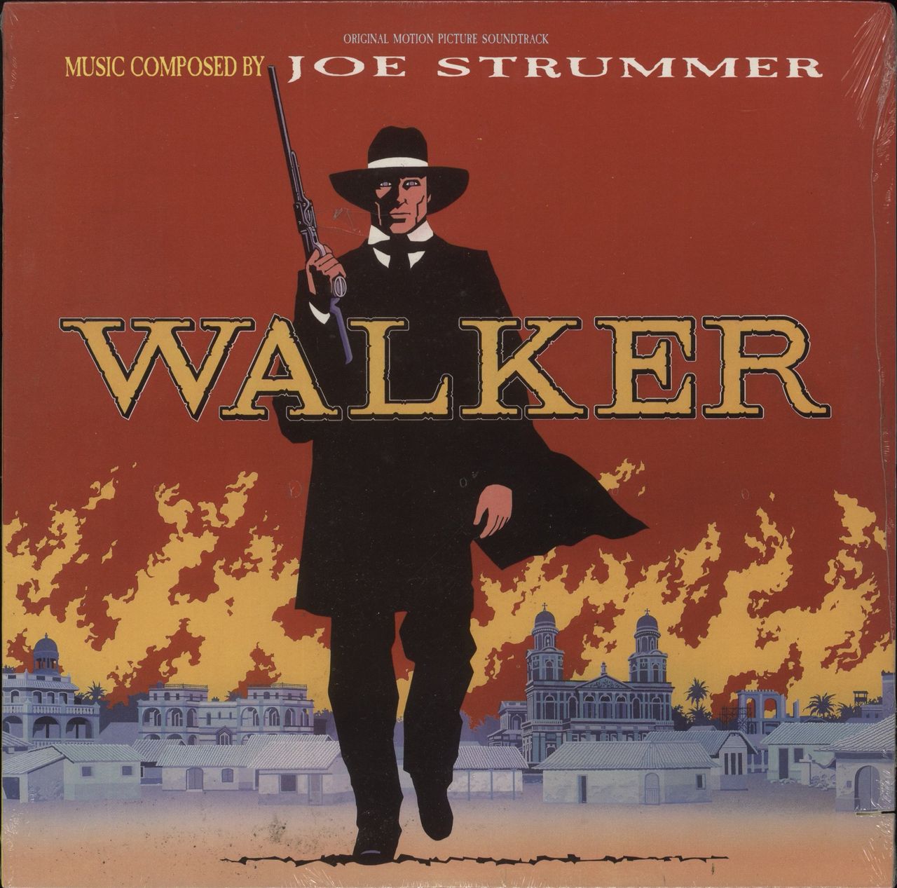 JOE STRUMMER Walker (1987 US 14-track LP, featuring Joe Strummer's music from the soundtrack to the cult movie by Alex Cox [Repo Man, Sid & Nancy], which was shot in Nicaragua during the Contra War. The glossy,deletion saw-cut picture sleeveremains factory sealed and unplayed)