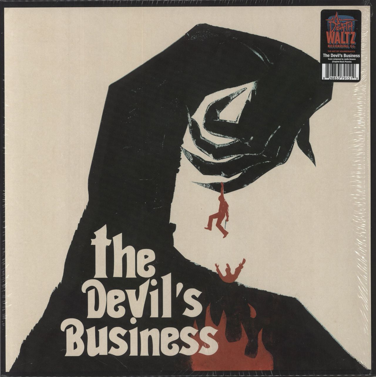 JUSTIN GREAVES The Devil's Business (Subscribers only edition 2013 UK 10-track LP pressed on Red and Yellow Swirl Vinyl, featuring the music from the soundtrack to SeanHogan's smart low-budget horror debut, composed by Justin Greaves of such legendary sludge/stoner rock bands as Iron Monkey & Electric Wizard, housed in a stunning spot lacquered sleeve with inner containing notes by the artist, a 12" squarelithograph of the album's artwork as well as a 24" square fold-out poster of the cover. The sleeve remains in the hype-stickered open shrink. Both sleeve and vinyl are in Near Mint condition DW010)