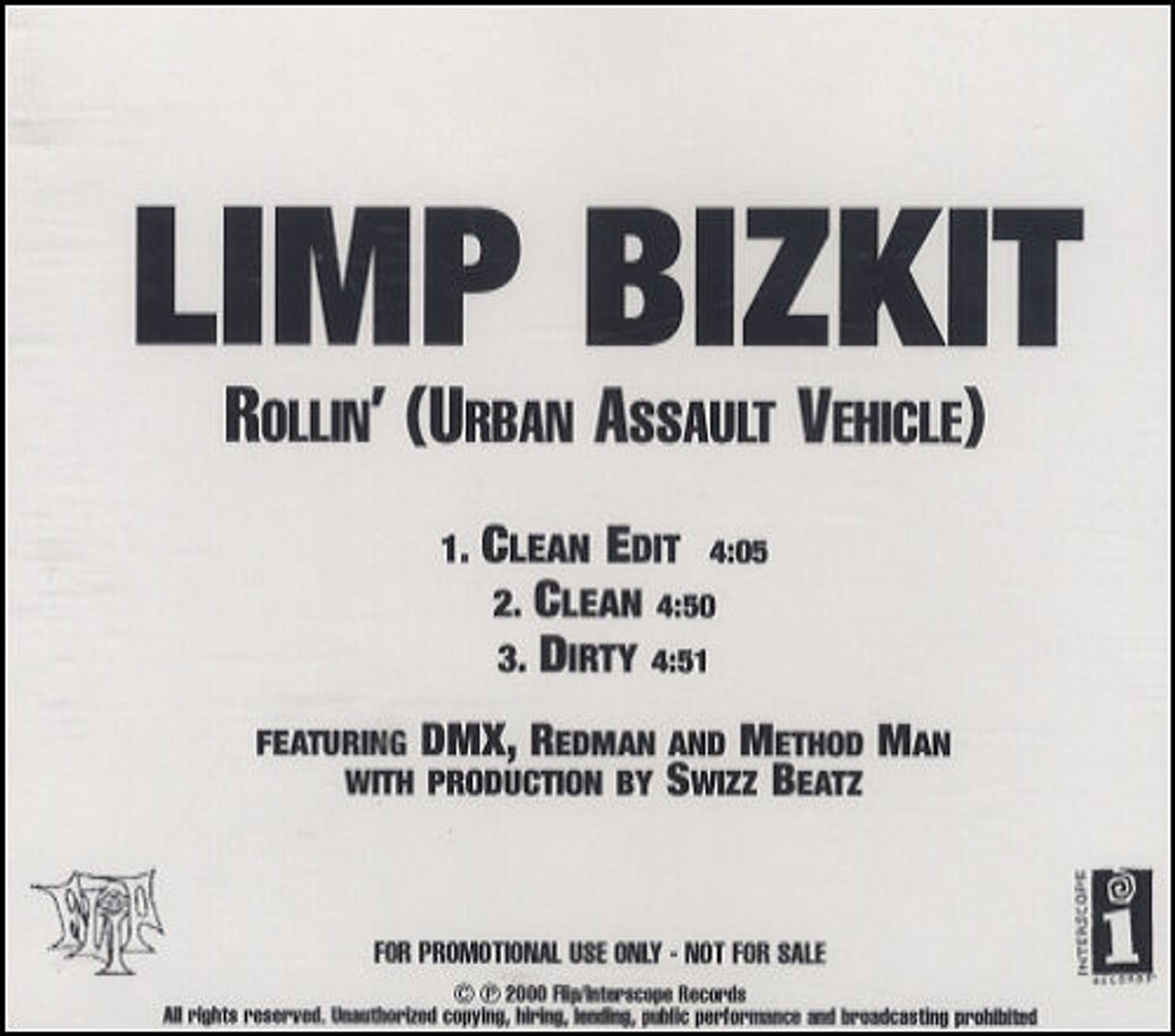 LIMP BIZKIT Rollin' (Urban Assault Vehicle) (2000 US Flip/Interscope