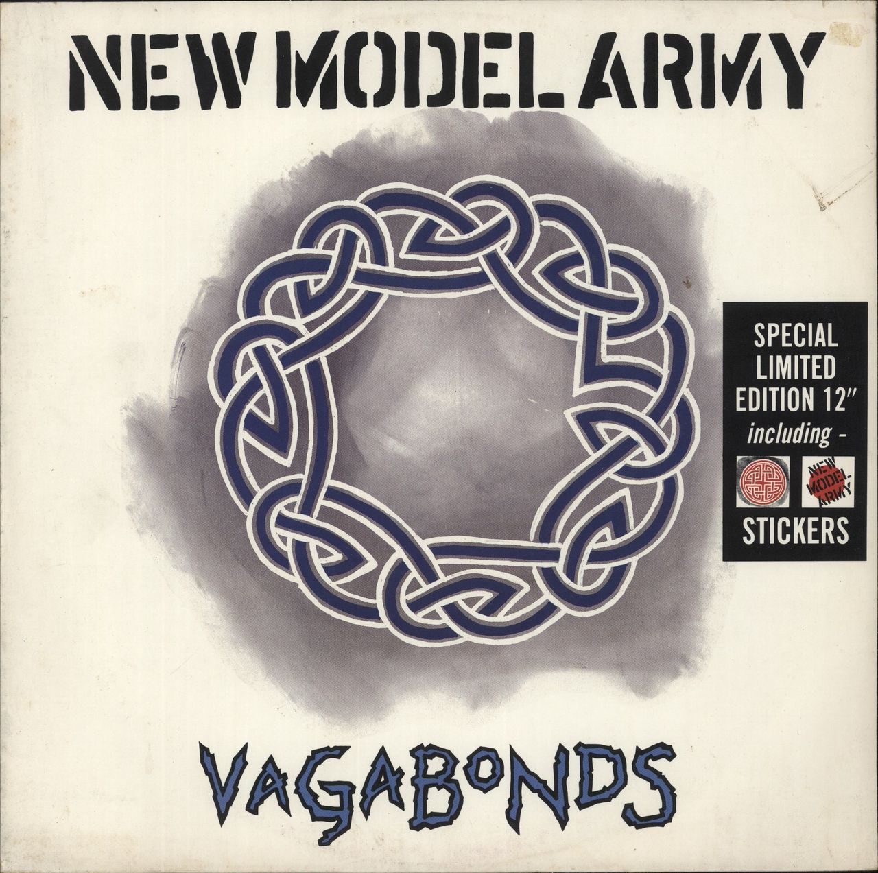 NEW MODEL ARMY Vagabonds (1989 UK special limited edition 3-track 12" single, also including Deadeye & a live version of White Coats recorded in Bonn, Germany on 25th October 1988. Housed in a lightly textured flipback picture sleeve. The picture sleeve shows some edgewear and some light ringwear, whilst the vinyl is Excellent with a few faint paper hairlines to highlight play 12NMAS8)