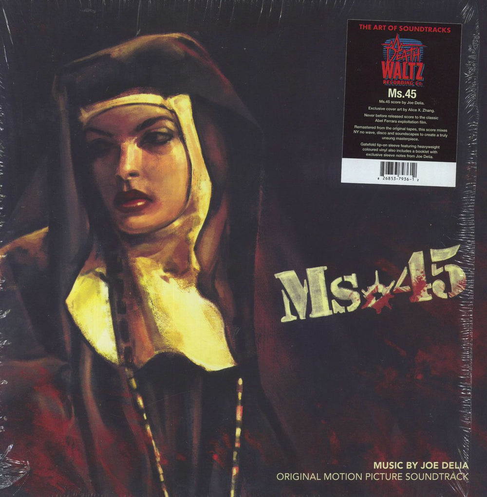 ORIGINAL SOUNDTRACK Ms.45 (Limited edition 2014 UK 19-track LP, pressed on Heavyweight Black/White Vinyl, the never before released soundtrack to Abel Ferrara's grindhouse movie from 1981, remastered from the original master tapes in all its menacing glory & worked on with the original composer, Joe Delia. Comes housed in a striking heavyweight tip on casebound sleeve with exclusive artwork by Alice X. Zhang, with illustrated intergral booklet & giant fold-out poster of the album'sartwork. In the hype-stickered shrink, although open this a near 'as new' copy DW021)
