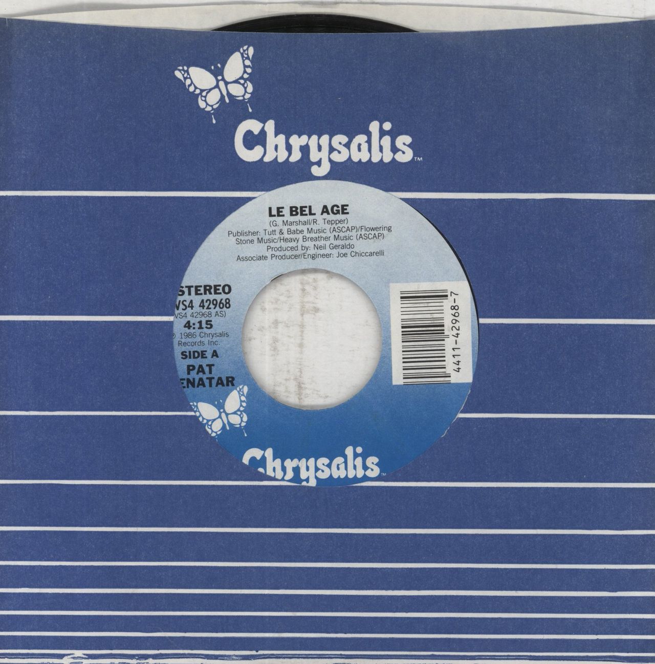 PAT BENATAR Le Bel Age (1985 US wide centered label, also featuring Walking In The Underground, housed in a company sleeve. The sleeve and vinyl remain in Excellent condition!)