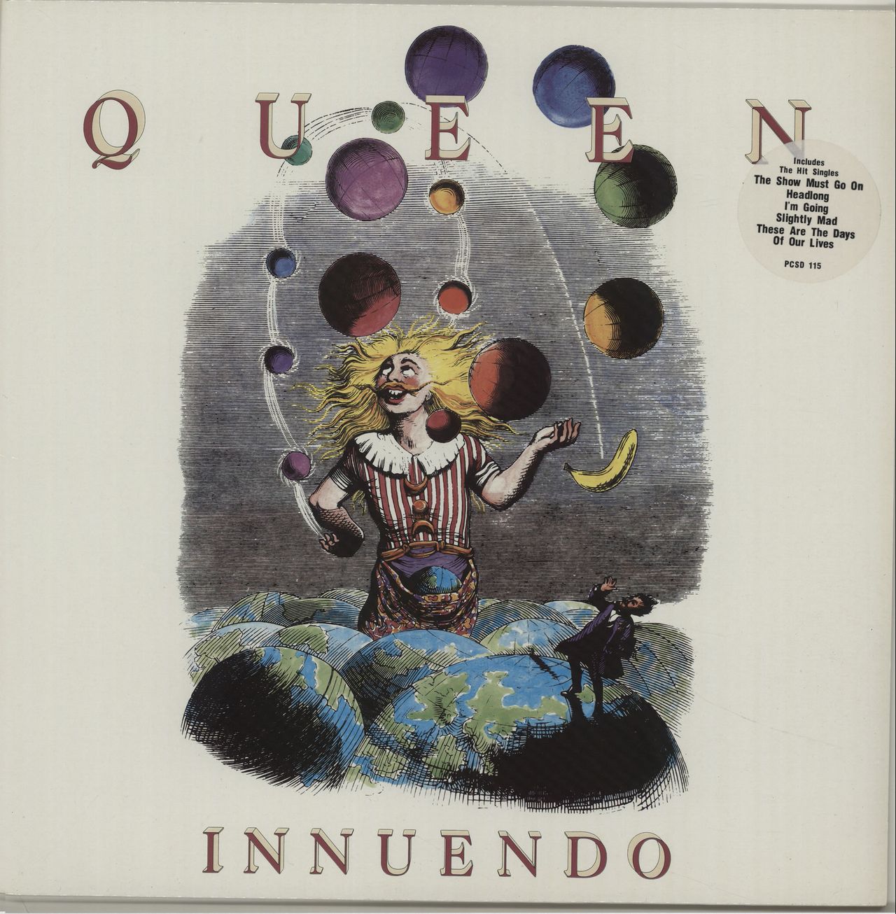 QUEEN Innuendo (Rare 1991 UK 12-track vinyl LP, which features I'm Going Slightly Mad, Don't Try So Hard, The Hitman and Bijou which were especially edited for the vinyl edition, hype stickered picture sleeve with lyric inner. The sleeve showsminimal wear with just a little age yellowing to the edges, whilst the vinyl shows virtually no signs of ever being played. One of the best examples we have ever seen PCSD115)