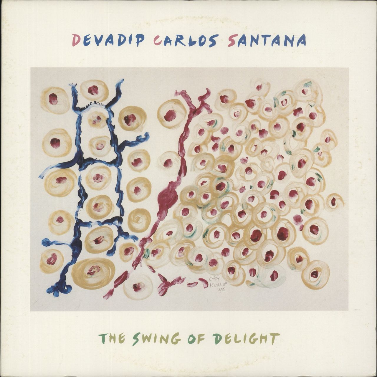 DEVADIP CARLOS SANTANA The Swing Of Delight (1980 Japanese 9-track double LP, featuring contributions from Herbie Hancock & Wayne Shorter, housed in a deluxe gatefold picture sleeve with illustrated Japanese insert. The packaging is Excellentwith some foxing & the vinyl grades EX/EX- with just the odd faint mark which has little effect on play 35AP1907)