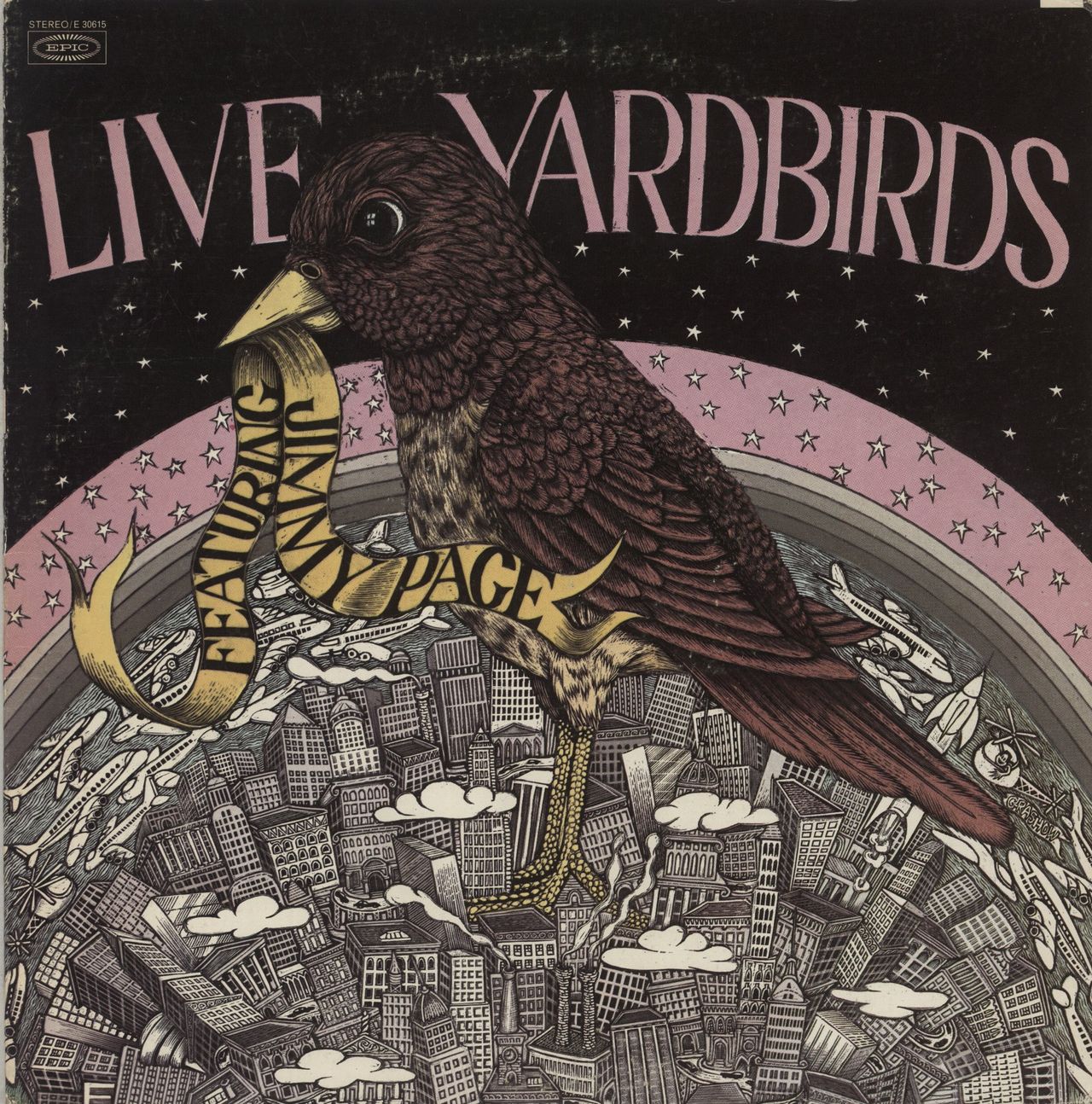 THE YARDBIRDS Live Yardbirds Featuring Jimmy Page (Rare 1971 original US yellow Epic label 9-track stereo LP recorded at New York's Anderson Theatre on March 30th 1968, heavy card full colour picture sleeve with notes by Lenny Kaye printed onthe reverse. The sleeve is in Excellent condition with just minor edge/ringwear & the vinyl is in Excellent condition E30615)