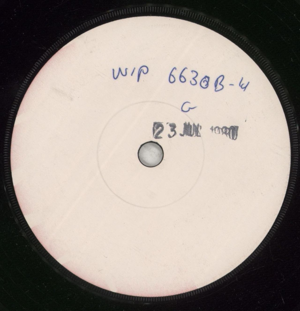 U2 Things To Make And Do - 1-sided Test Pressing (Very scarce 1980 UK one-sided 7" test pressing for the single release, with hand annotated plain white labels & a rubber stamped '23 July 1980' release date one side. The catalogue & matrix numbers - 'WIP6630 B1-U' 'G Sound Clinic' - are machine stamped in the run-off. The vinyl reveals only light evidence of play. No doubt very few of these escaped the pressing plant & were certainly never sold to the public in this form - ideal for the serious U2 collector!)