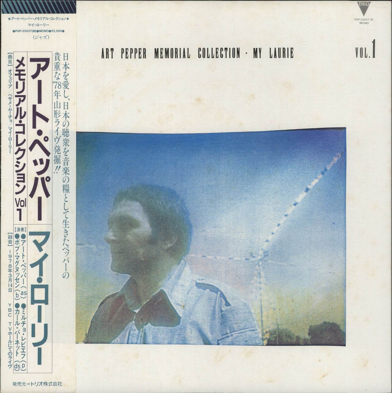 ART PEPPER My Laurie (1983 Japanese 3-track promo sample MONO LP with custom black on white labels, issued as Volume 1 of the 'Art Pepper Memorial Collection' & recorded live in Yamagata in Japan on March 14th 1978 with Micho Leviev, Bob Magnusson & Carl Burnett, including Japanese insert, picture sleeve with sleeve notes by Laurie Pepper & discography obi-strip. The sleeve displays only very light wear with some light foxing, and the vinyl has minimal signs of play PAP-25037)