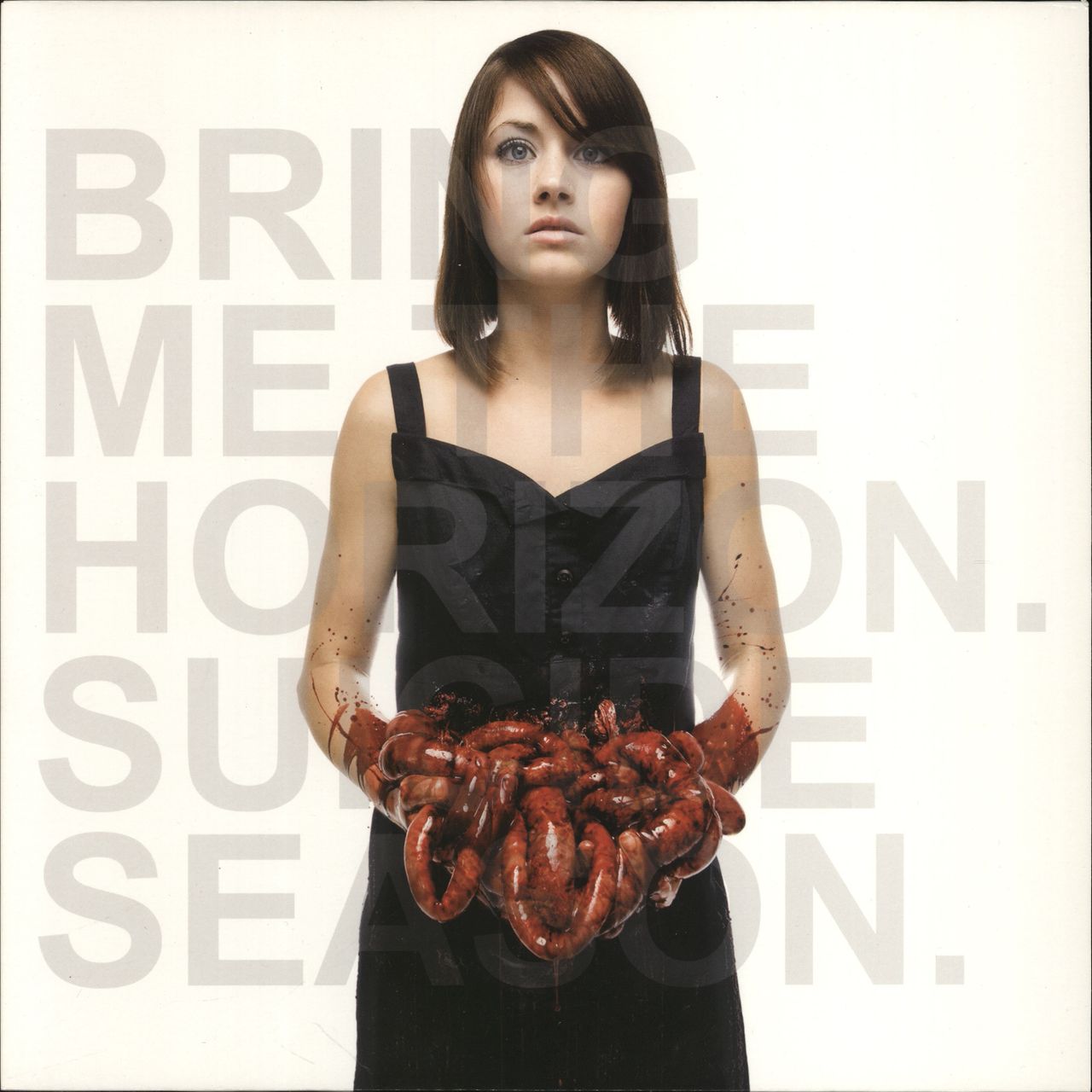 BRING ME THE HORIZON Suicide Season (Rare 2014 UK 10-track vinyl LP, with picture sleeve. Second album from the UK metalcore band, originally released in 2008, and saw the Sheffield lads move further from their 'deathcore' roots and incorporate newelements into their sound. Includes the massive tracks The Comedown and Chelsea Smile, and features guest spots from JJ Peters of Deez Nuts, and Sam Carter from Architects. The sleeve lists 'The Football Season Is Over' as 'Football Season' on the back panel of th pressing, with original black padded inner. Both the sleeve and vinyl remain in superb near mint condition. Essential UK metal)