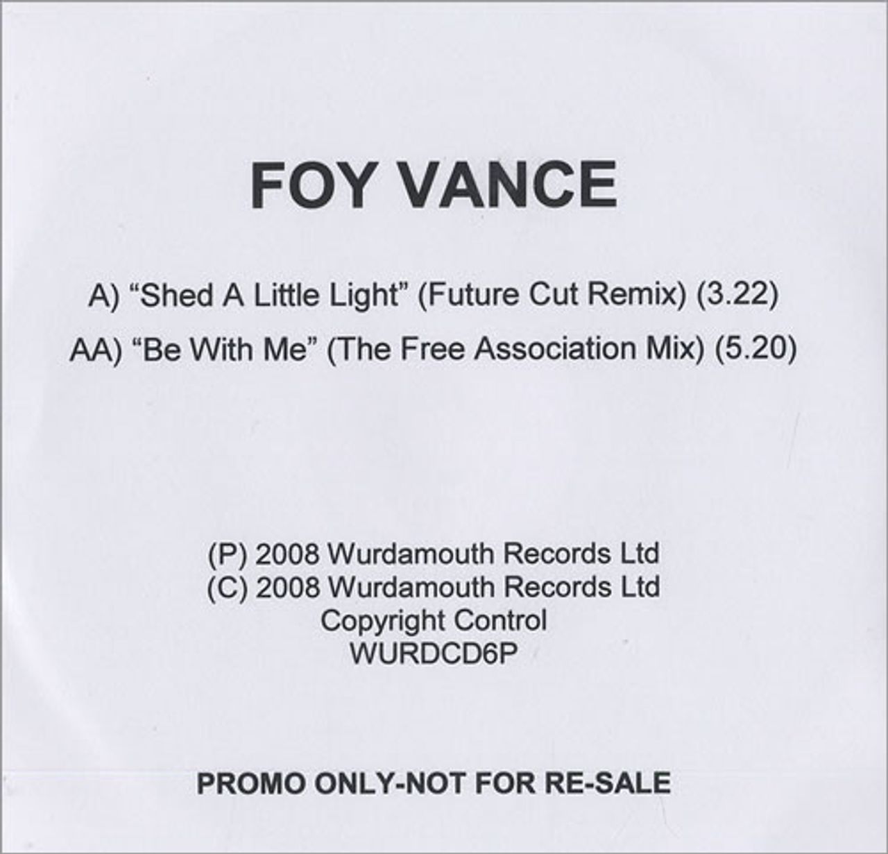 FOY VANCE Shed A Little Light - Remix (2008 UK Wurdamouth label 2-track promotional CD-R featuring remixes of tracks taken from Foy's debut album 'Hope'. Includes the Future Cut remix of 'Shed A Little Light' and 'Be With Me [The Free Association Mix]'. Custom printed disc with custom tracklisting insert WURDCD6P)