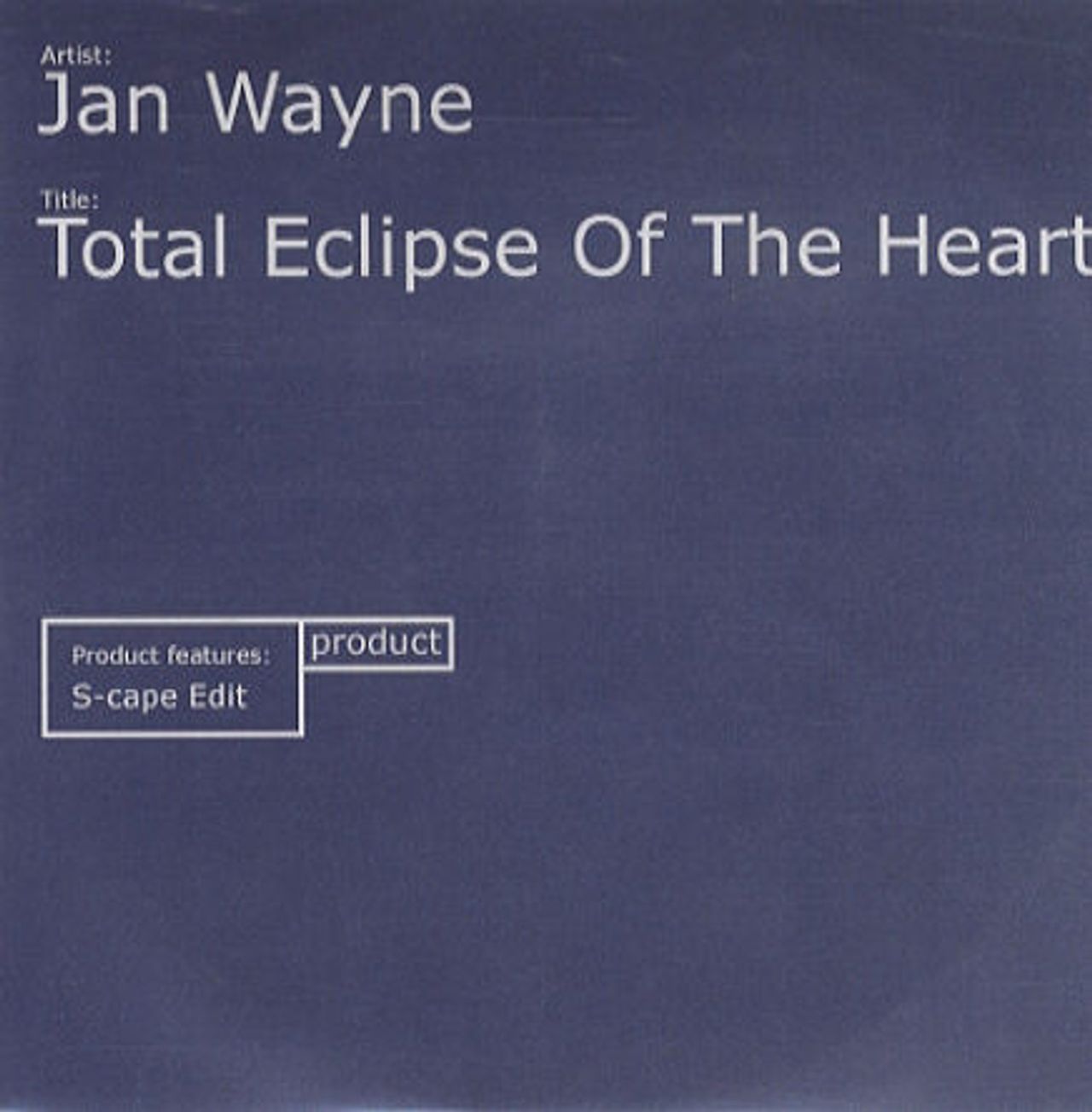 Jan Wayne Total Eclipse Of The Heart UK Promo CD-R acetate