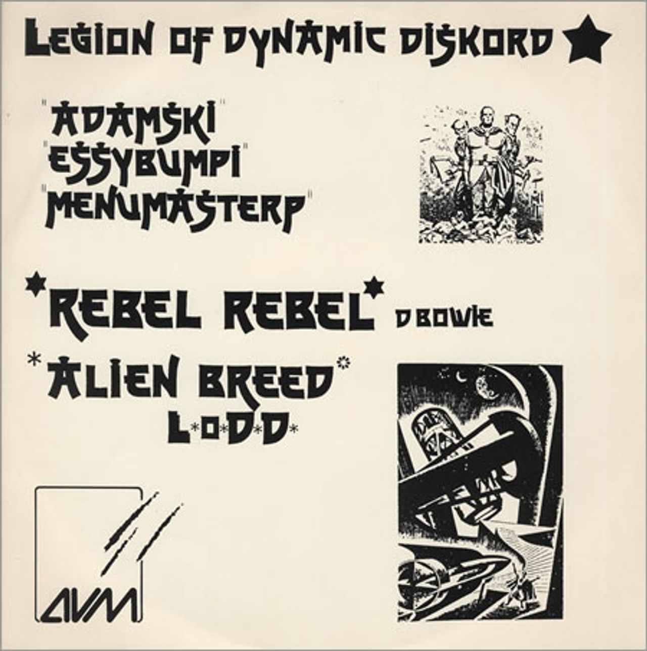 LEGION OF DYNAMIC DISKORD Rebel Rebel (1988 UK 4-track 12" vinyl EP also featuring Alien Breed, Kracalli Dayz and Adamski Interview, picture sleeve, KAK12/11)