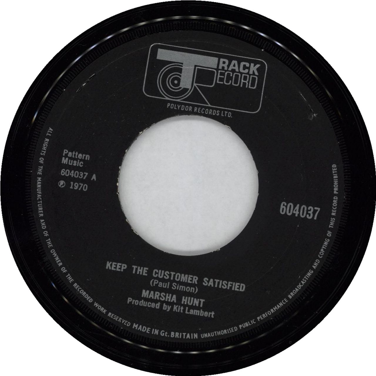 MARSHA HUNT Keep The Customer Satisfied (1970 UK wide centred 7" vinyl single, also featuring Lonesome Holy Roller, plain die-cut company paper sleeve)