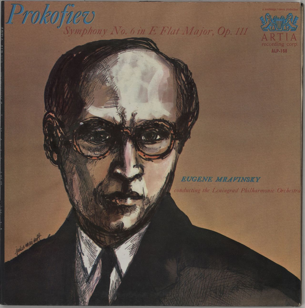 THE LENINGRAD PHILHARMONIC ORCHESTRA conducted by EUGENE MRAVINSKY Symphony No. 6 in E Flat Major, Op.111 (1960 US Mono LP, superb front laminated silver embossed hardback gatefold picture sleeve with integral high quality double sided sleevenotes sheet. The sleeve shows minimal shelfwear & the vinyl is flawless ALP-158)