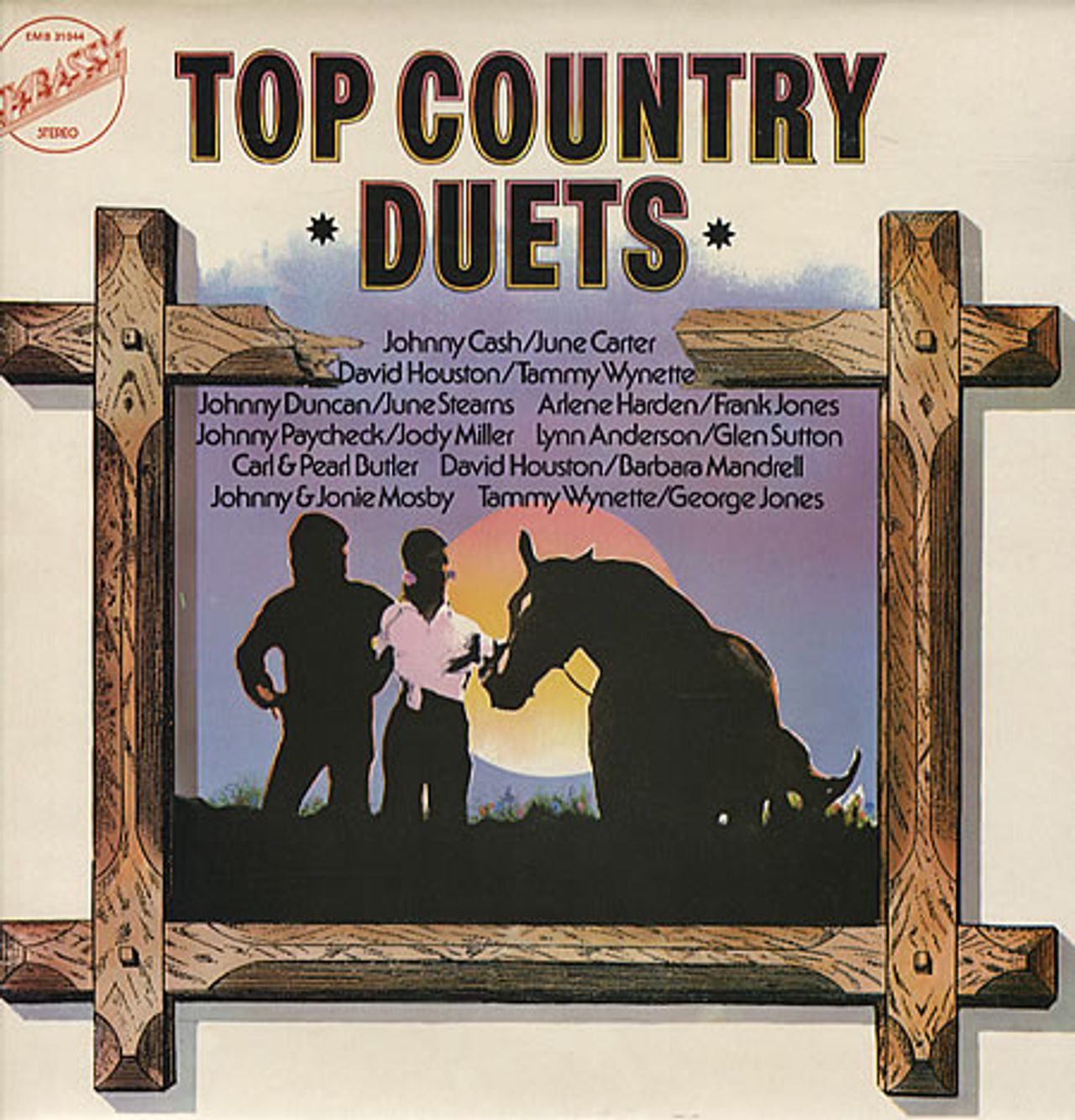 VARIOUS Top Country Duets (1974 UK 12-track compilation vinyl LP, includes tracks by Tammy Wynette & George Jones, Johnny Cash & June Carter and Lynn Anderson & Glenn Sutton, housed in a picture sleeve which, along with the vinyl, carry minimal wear/play EMB31044)