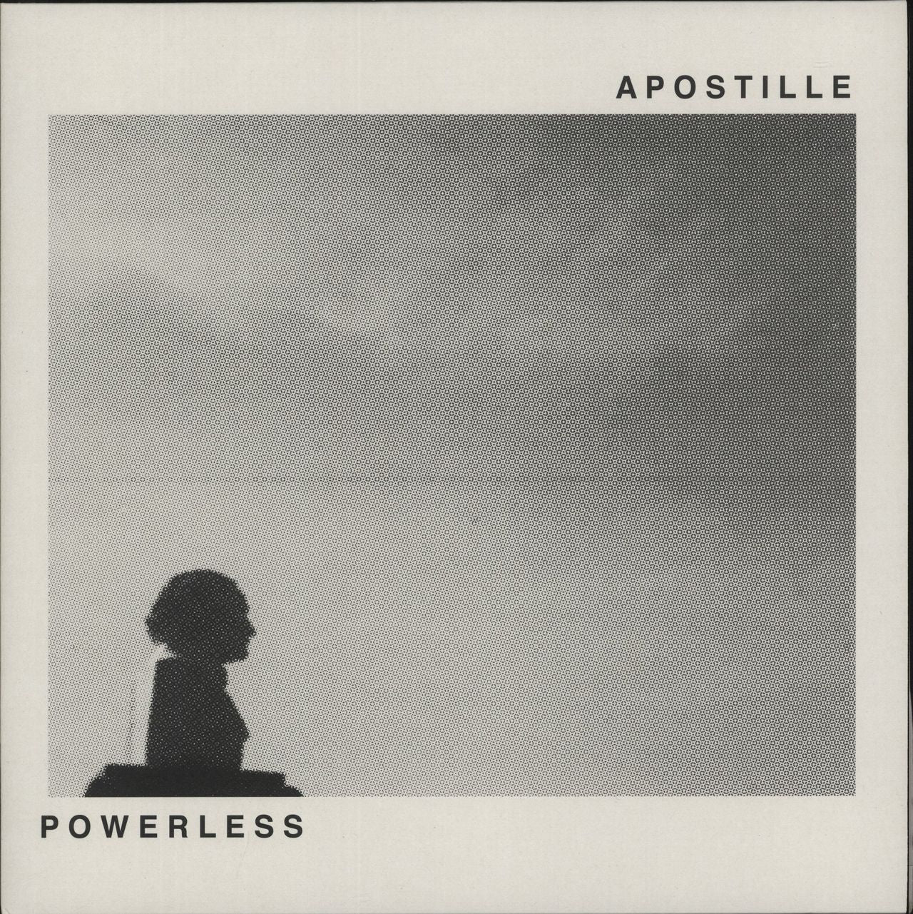 APOSTILLE Powerless (2015 9-track vinyl LP, housed in a single pocket picture sleeve with bonus printed insert. Both sleeve and vinyl remain in Near Mint condition)