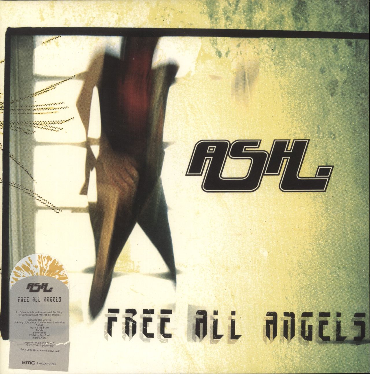 ASH Free All Angels (2022 UK/EU limited edition 13-track LP, pressed on Clear With Yellow Splatter Vinyl - their 2001 third studio album, including the singles Shining Light & Burn Baby Burn. Housed in a matte picture sleeve with a hype-sticker. The sleeve shows some wear to the top right corner and the inner has a little seam splitting. Whilst the vinyl remains in Near Mint condition. BMGCAT710CLP)