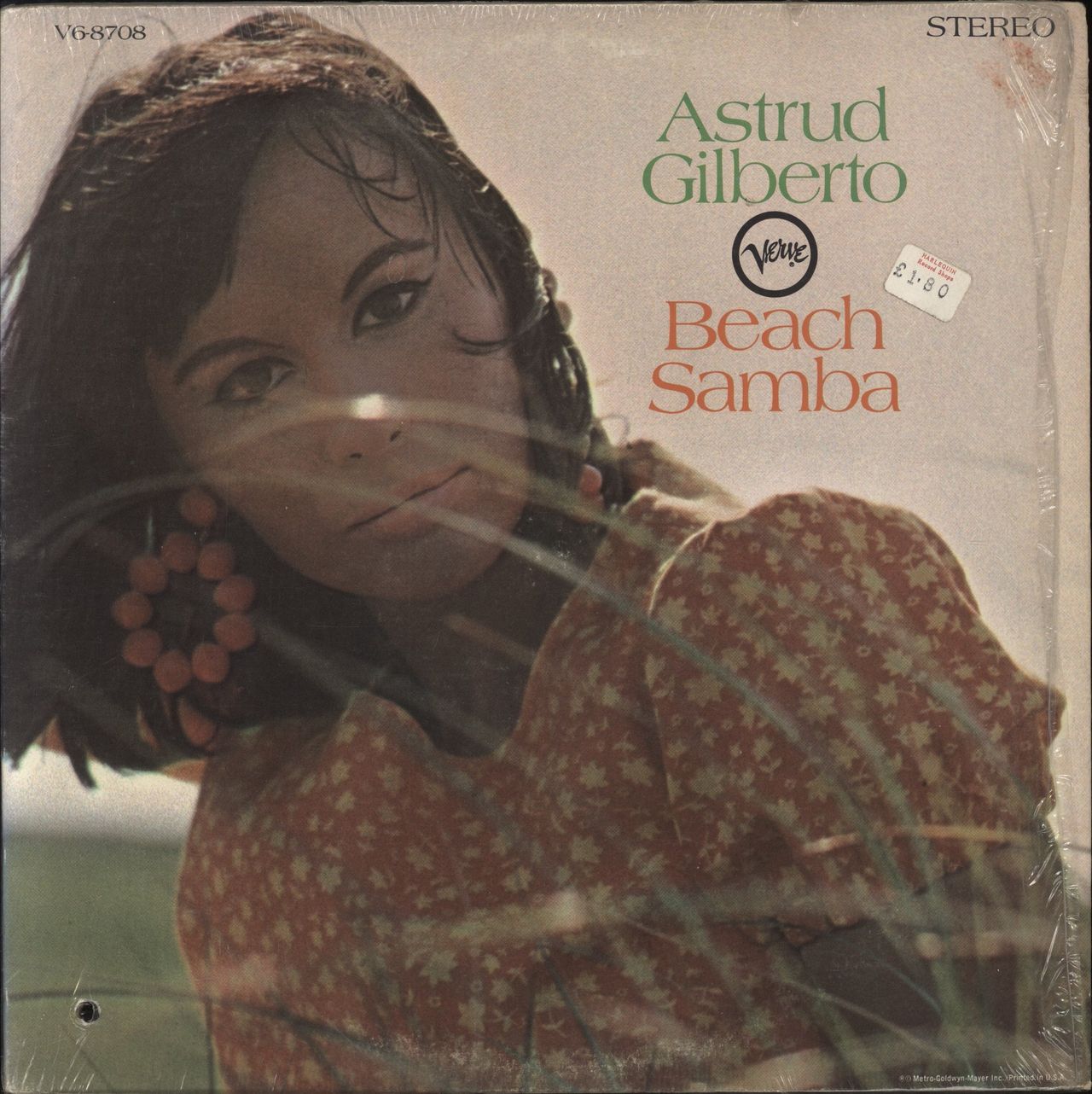 ASTRUD GILBERTO Beach Samba (1967 US 12-track stereo vinyl LP on the 'deep groove' big 'T' Verve label, gatefold picture sleeve with deletion punch-hole & company catalogue inner. The sleeve is still in its opened shrinkwrap and the vinyl is Near Mint V6/8708)