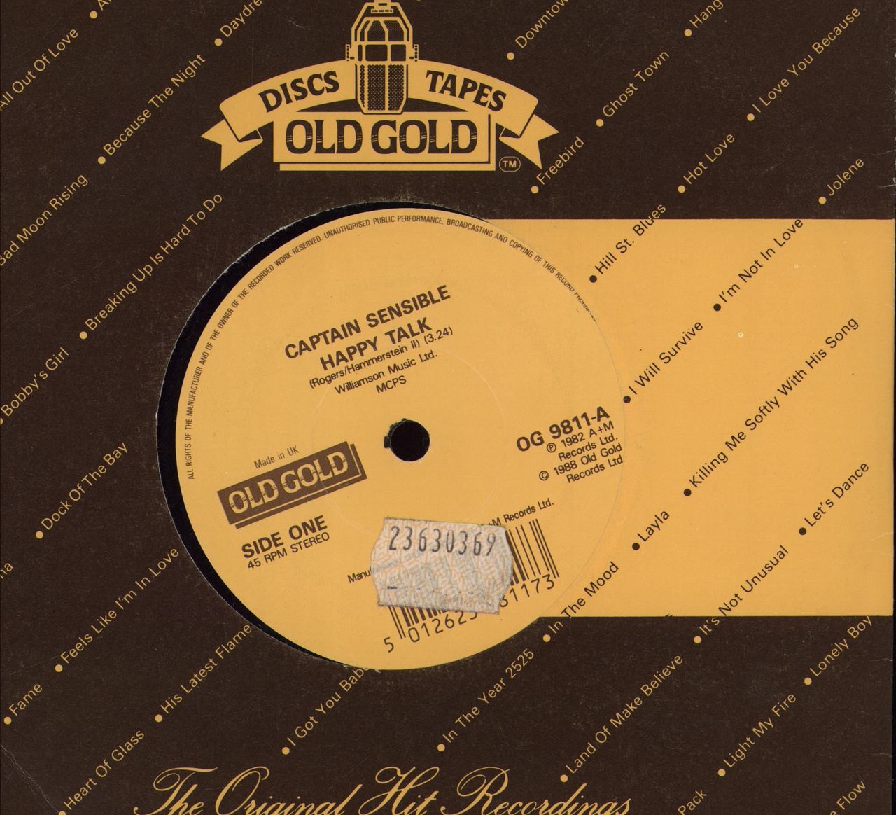 CAPTAIN SENSIBLE Happy Talk (1988 UK solid centre 7" vinyl single, includes Glad It's All Over, Old Gold company die-cut sleeve OG9811)