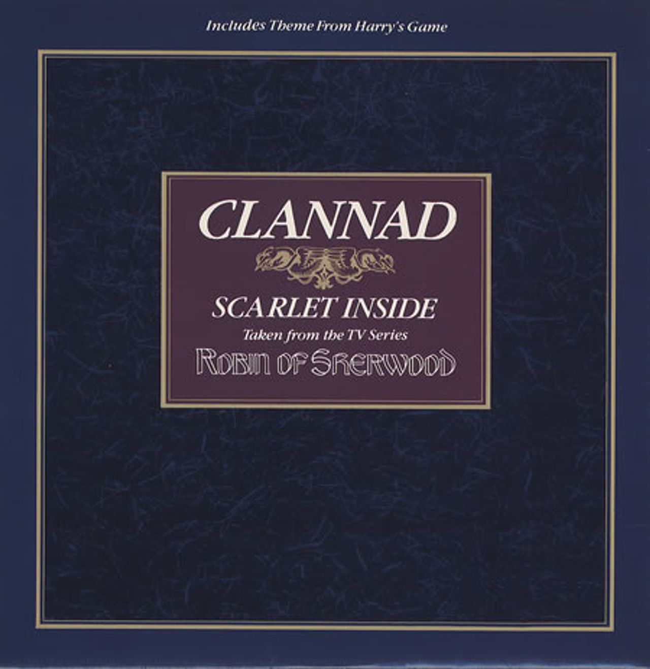 CLANNAD Scarlet Inside (1985 UK RCA label 3-track 7" vinyl single taken from the 'Robin Of Sherwood' TV Series, also includes Robin [The Hooded Man] and Theme From Harry's Game, issue in a glossy picture sleeve with pictorial advertisements for their 'Magical Ring' & 'Legend' albums printed on the reverse PB40033)