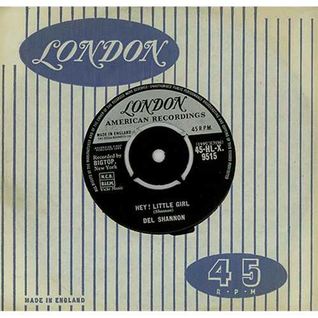 DEL SHANNON Hey! Little Girl (1962 UK 7" single with intact four prong centre, also including You Never Talked About Me, London company die cut paper sleeve. The vinyl on this copy remains in Excellent condition with just a few light surface scuffs to show for its years 45-HLX9515)